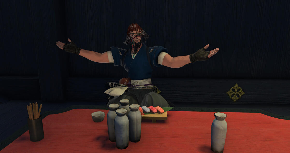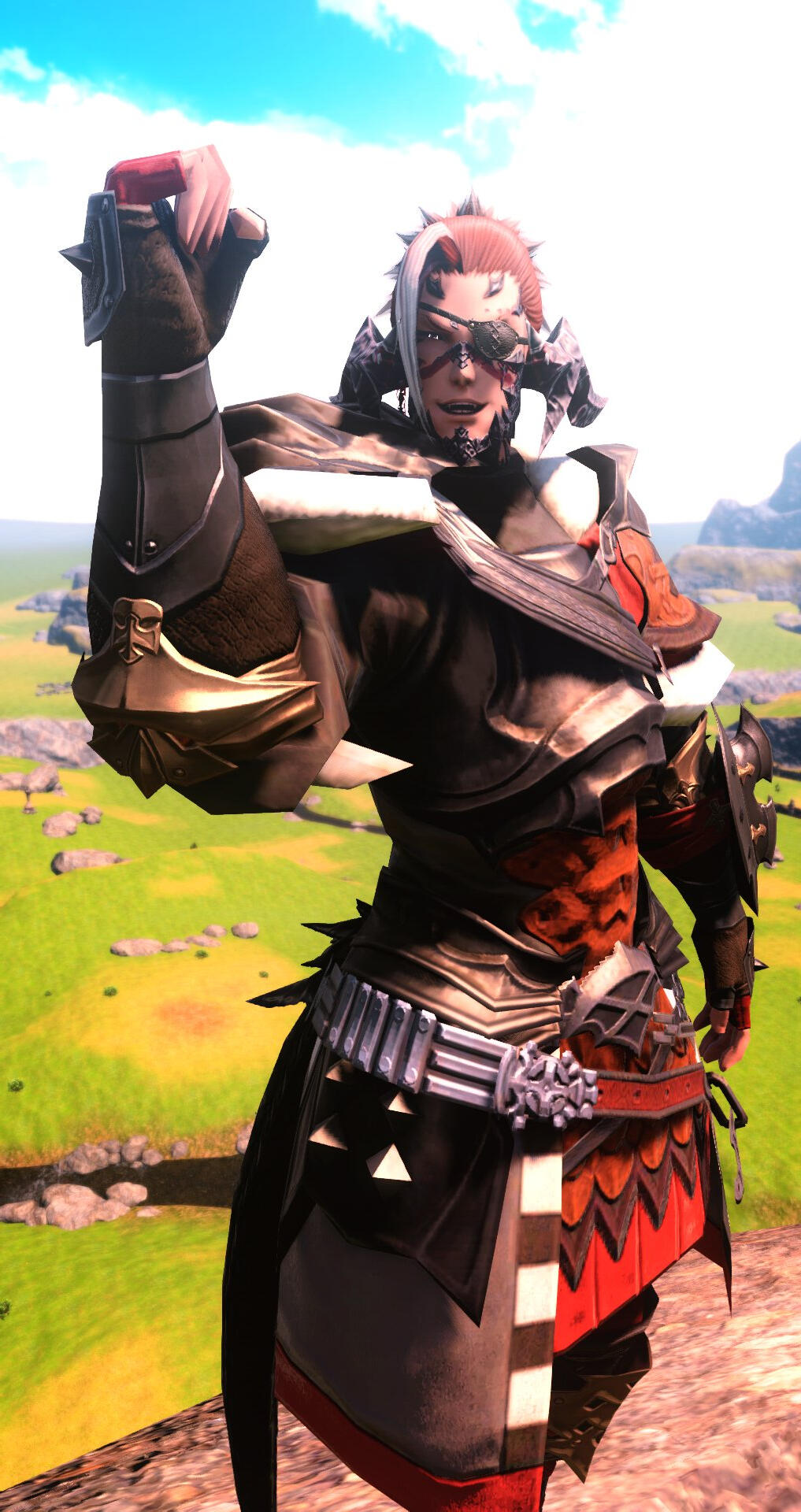 Jagdai headed east from Coerthas, winding through a tunnel system in the mountains some of the Ala Mhigan resistance fighters used to smuggle men and materiel. For weeks he snuck through the canyons and countryside, hiding from or waylaying Garlean any patrols he came across. Whispers spread through the ranks and villages of a black-scaled demon who cut down Imperial Soldiers as easier than the subjugated farmers harvested their meager crops.It was at this time he was found by one of the splintered resistance factions and approached hesitantly, the militia fighters wary but eager to learn about this so-called "demon" haunting their region. Jagdai explained he was an adventurer from the Far East, having fought Garleans there and in Eorzea both, and he was here to see more justice done. They agreed to work together for a time, as they had a plan and Jagdai seemed a perfect fit to help carry it out.The militia forces set up an ambush for an Imperial Centurion, hiding on the ridge of a narrow ravine. As the set dipped below the horizon, pre-laid charges crippled the Magitek Reaper that was part of the Centurion's guard, and the resistance forces descended to hold off the soldiers while Jagdai rushed the Centurion. After a protracted fight the two combatants locked blades, the and the gun built into the officer's weapon fired. Though the bullet missed, the explosion scorched the Xaela's left eye, robbing it of vision. In a rage he took the officer's hand, then his head, and claimed the day won as the remaining Imperials scattered to the night.Still having dedicated himself to the sword, he took up his new trophy weapon as his own and continued the fight, watching as Eorzean forces stormed Baelsar's Wall, as Shinryu was summoned, as he hung in the sky in a prison of light. He watched as Omega appeared from nowhere just as Shinryu broke free, their ill-fated battle causing untild destruction. Barely escaping the carnage along with the rest of the country, he continued his private war until the Sack of Rhalgr's Reach, decimating Resistance forces. Not wanting to spur the Imperials to hunt the weakened resistance further, he made for a place he heard the action kicking up again: Othard.Here his fight against the Garleans continued until the time came once again for him to return home and fight in the Naadam, to reclaim the Steppe for his tribe. He was set upon by a large band of Oroniri warriors yet some distance from the sacred Oovo, hoping to stall the warrior that had so long been a thorn in their side long enough for them to maintain their supremacy. To all's surprise, however, it was an Outsider who laid claim to the title of Khagan, and under the banner of the Mol at that. Disgruntled but not disheartened, he set out once more to seek ever greater challenge, and ever greater strength.